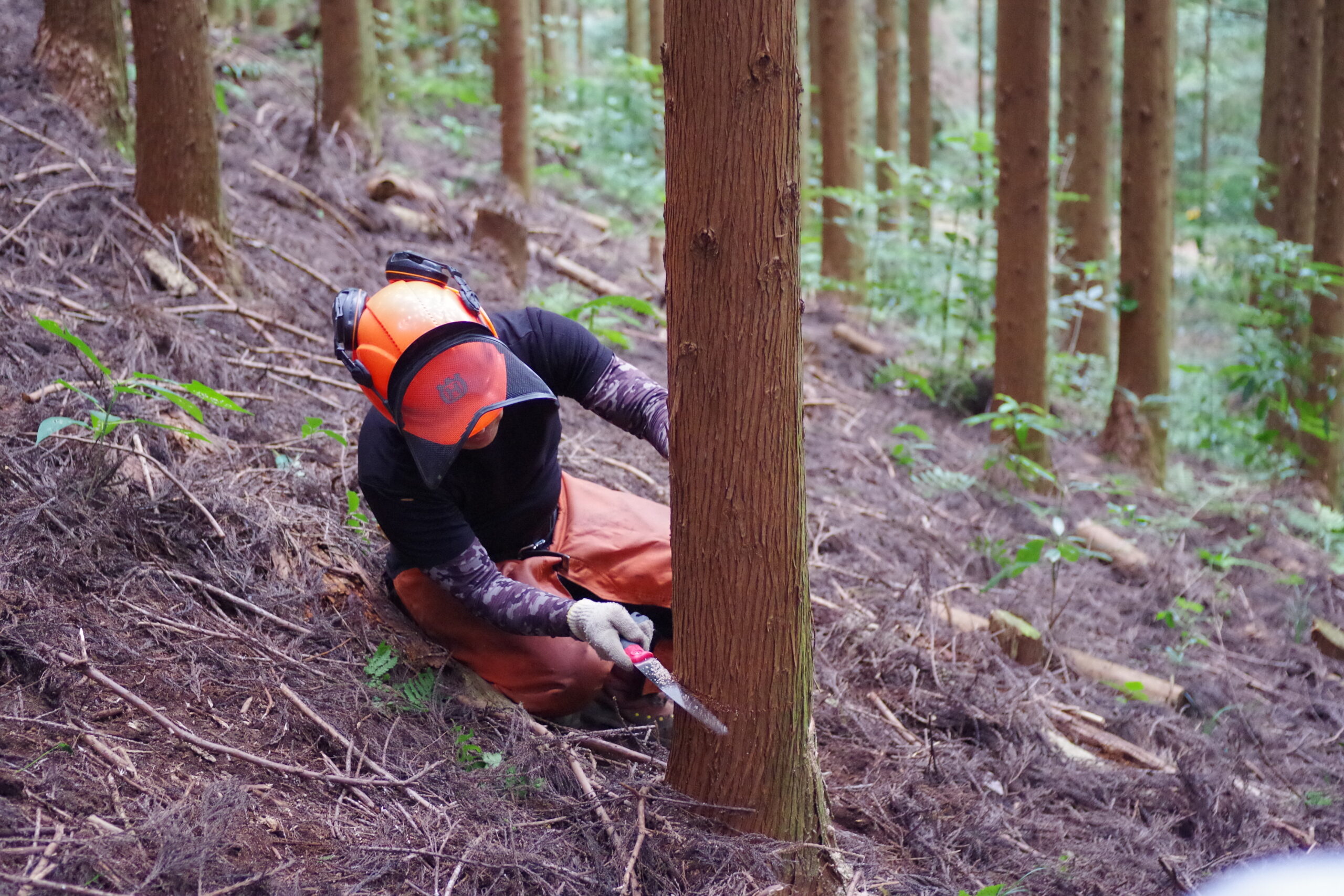 自分の足で森の中に入り、木を伐り、運び出し、実際に使ってみるところまでを体験いただきます。